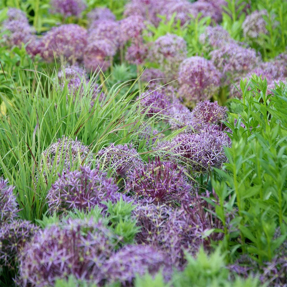 Also known as Star of Persia. Huge globes of small, star-shaped, pinkish-purple flowers appear in summer above narrow, grey-green leaves. In bloom these fabulous globes - up to 20cm (8in) in diameter - have a metallic sheen. The faded flowerheads hold up well in the border and are useful for dried flower arrangements. Perfect for a sunny site, dotted in small groups among ornamental grasses, or as part of a Mediterranean scheme.