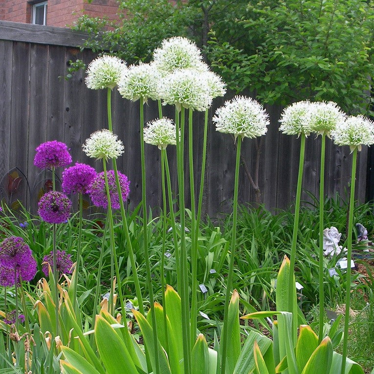 Allium Mount Everest is a tall white Allium that mixes well with other tall Alliums such as Allium Globemaster or can be set off beautifully against dark shrubbery.