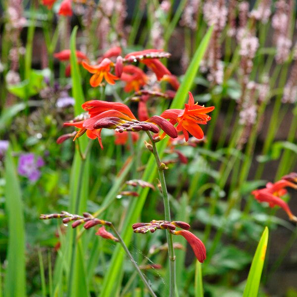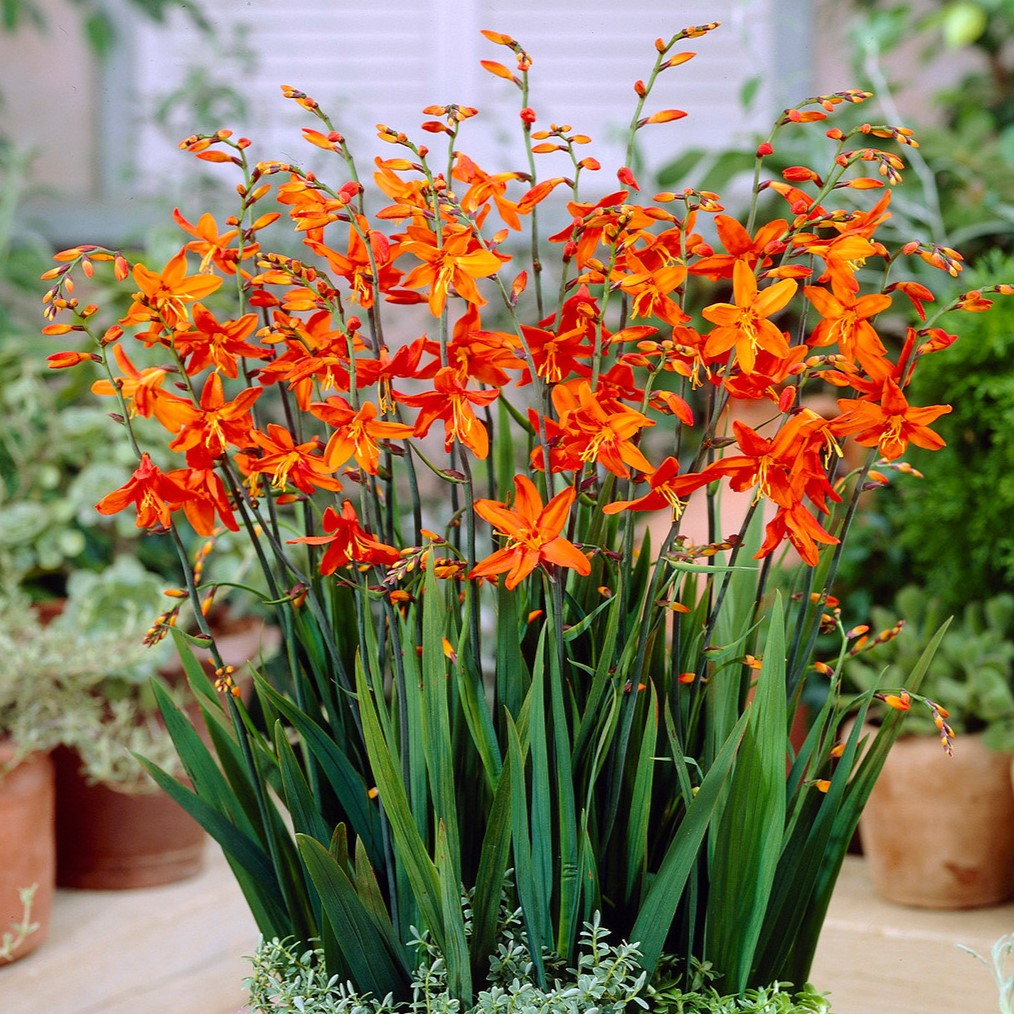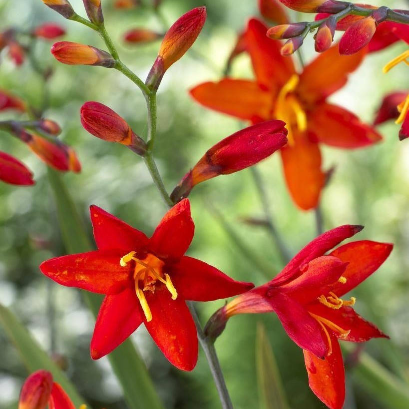 This vibrant flower is a showstopper in any garden. The large flowers are a rich red with a striking dark ring around a fine yellow eye. It adds a bold pop of colour to any landscape. Its sword-like foliage and lily-like flowers bloom in mid-late summer, thriving in full sun and well-drained soil.