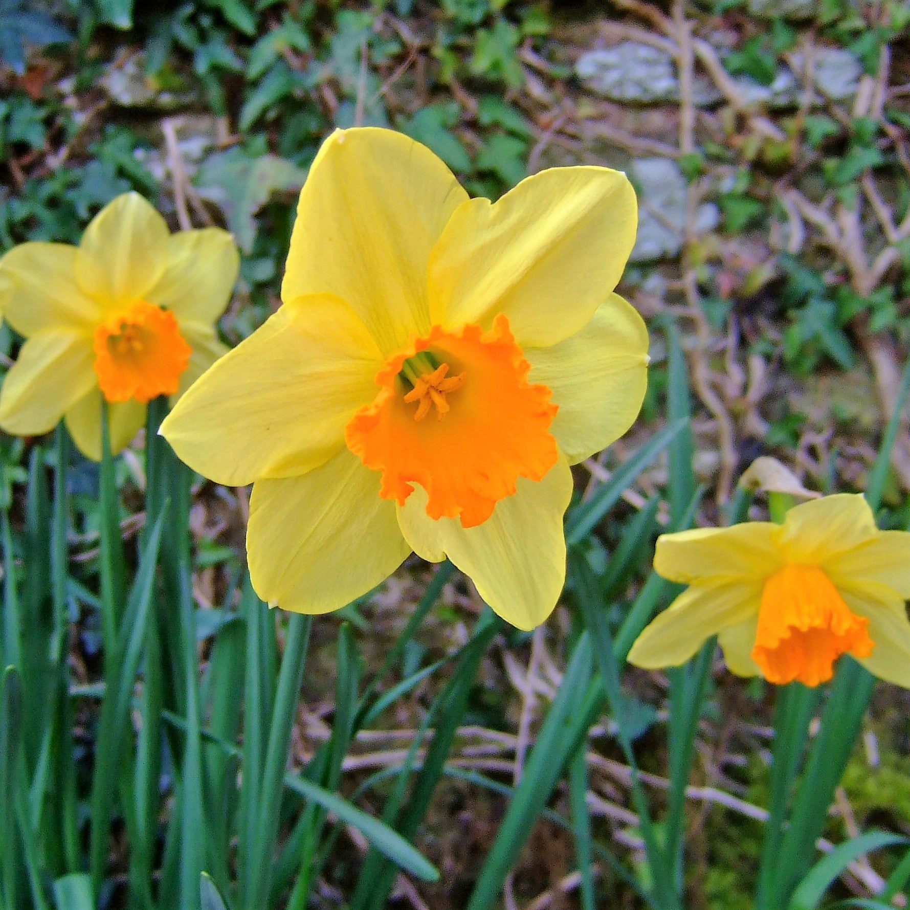 Large flowers made up of light yellow outer segments, which surround a frilly-edged rich orange cup. Appearing on stout, upright stems, they make very cheerful additions to the spring display Also perfect for naturalising in wooded or grassed areas.