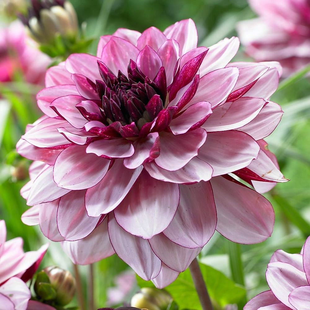 Crème de Cassis is a stunning Decorative Dahlia.The flowers have petals with purple backs and pale lilac fronts. It is a lovely combination that provides depth of colour in the border and on the patio and an outstanding cut flower. Please note these are Grade I tubers.Grade I are the largest size available and produce a much superior growth,stronger stems and a larger amount of blooms.