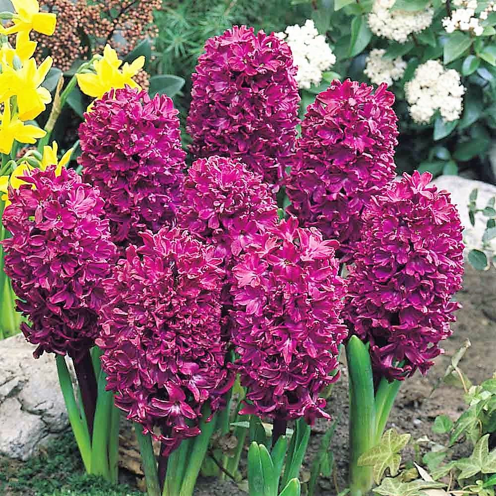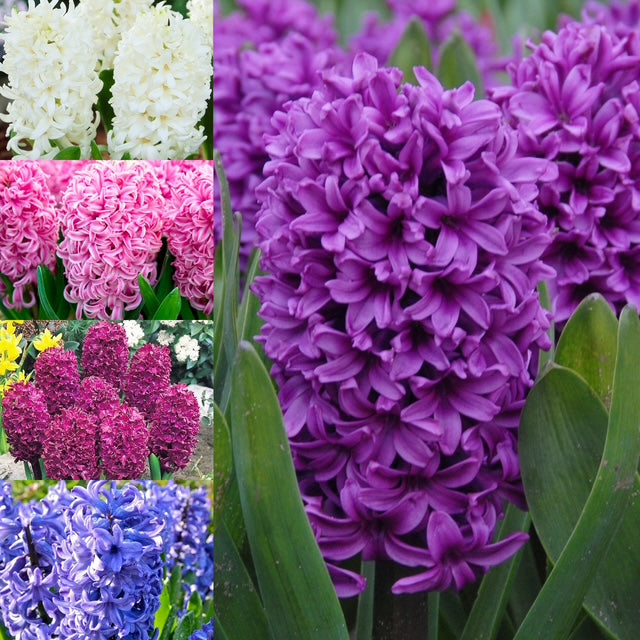 The Humphreys Garden Hyacinth Collection includes 25 large Spring Flower Bulbs, with 5 bulbs each of Delft Blue, White Pearl, Pink Pearl, Miss Saigon, and Woodstock.