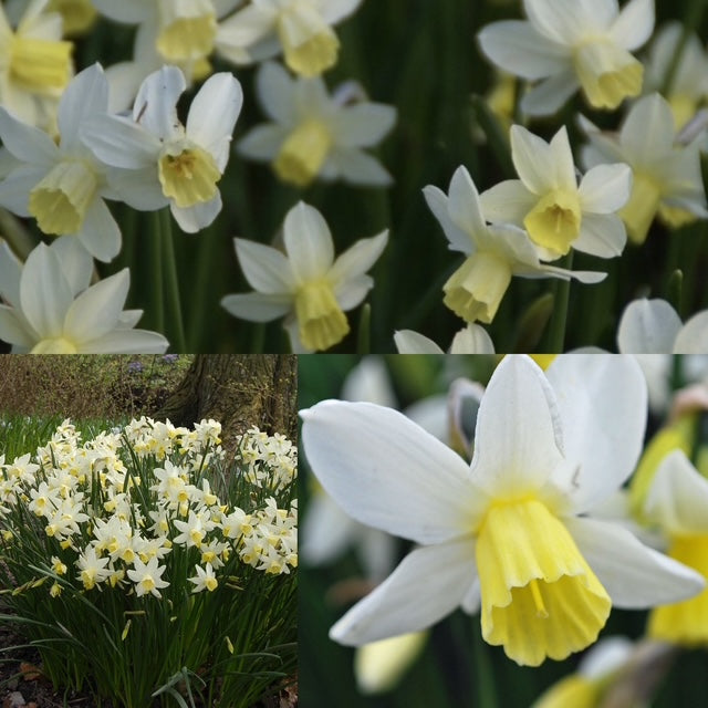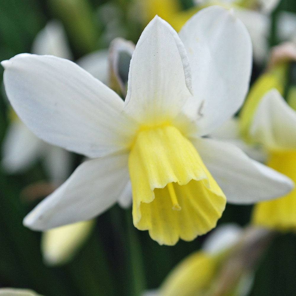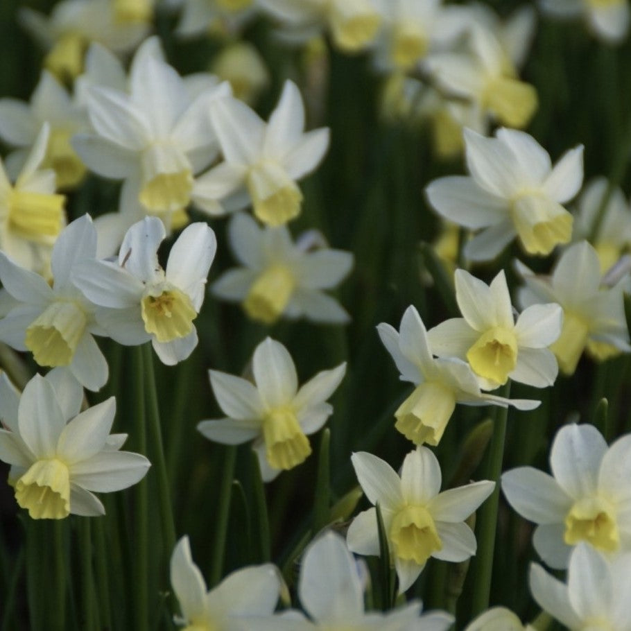 Narcissus Sailboat is a delightful multi-flowering daffodil with swept back petals that resemble the Cyclamineus types. It has white petals and a yellow cup that ages to cream white. They have the added bonus of a surprising, sweet fragrance.
