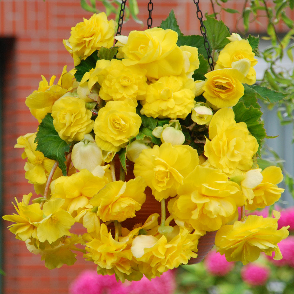 The Pendula Begonia in Yellow boasts enormous cascading blooms, creating a graceful and pendulous growth that can completely hide baskets and pots. This long-flowering variety is perfect for adding a shower bouquet to your garden or patio.