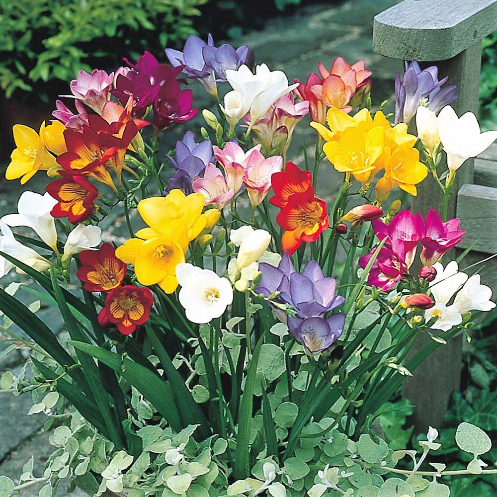 This mixed variety of Single Freesia is a must-have for any garden. With its upright stems and scented trumpet flowers, this deciduous perennial adds a touch of elegance and sweet fragrance to any landscape. Perfect for summer, enjoy the benefits of a glorious and not overly-sweet scent.