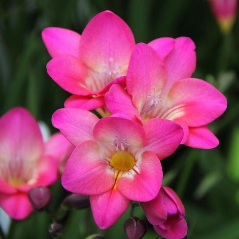 Experience the sweet fragrance of the Single Freesia - Pink. This deciduous perennial features trumpet or funnel shaped flowers with a delightful scent. Upright stems and narrow lance-shaped leaves make it a garden favourite. Perfect for a glorious Summer display of beautiful scented flowers.