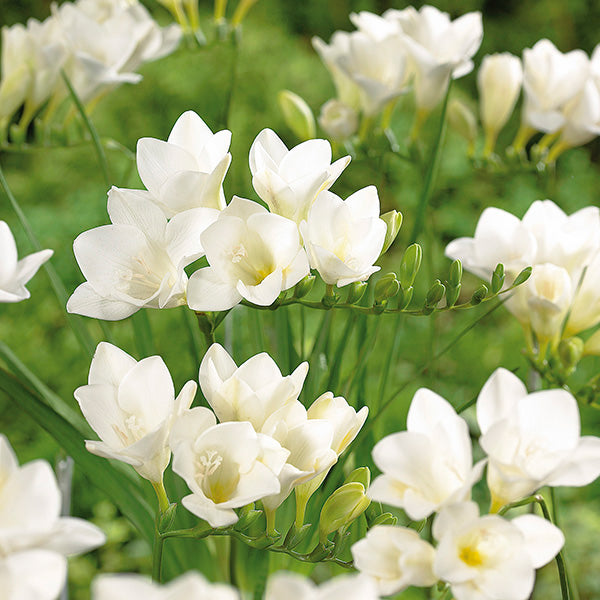The Single Freesia in white is a beloved addition to any garden. With its scented, trumpet-shaped flowers and lance-shaped leaves, this deciduous perennial provides a glorious summer fragrance that is both sweet and refreshing. A must-have for any flower enthusiast.