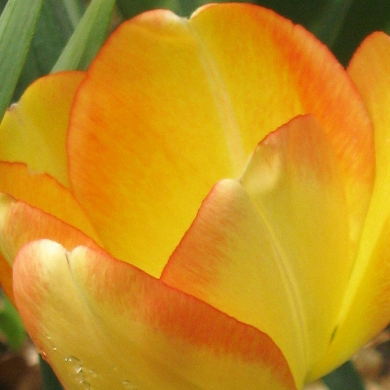 Sunny Yellow petals with warming Red outline and a Tangerine blush. Large cupped flowers with tall stems.