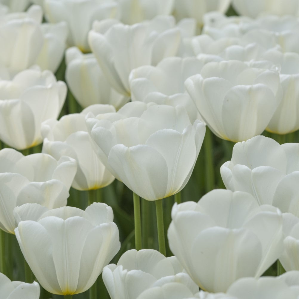 Tulip 'Catherina' stands out with its pure white, single late blooms perched on tall, elegant stems. Its classic, perfectly formed flowers create a majestic presence, making it an exceptional choice for both garden displays and refined cut flower arrangements.