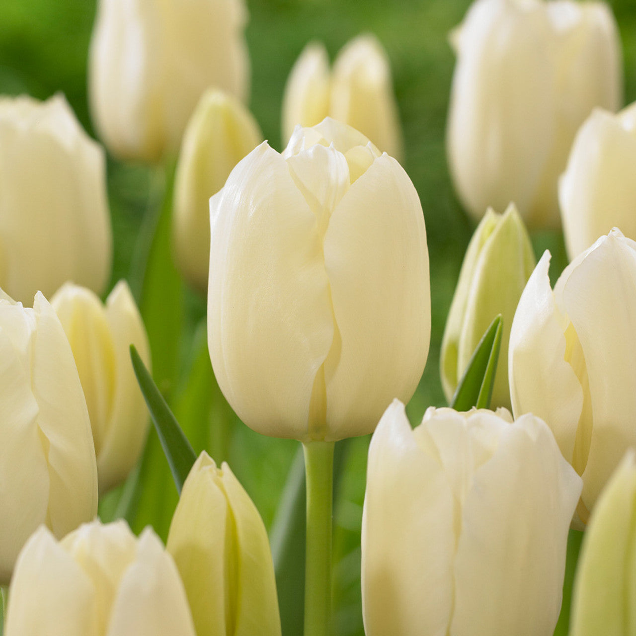 Tulip City of Vancouver is a single-late tulip distinguished by its creamy lemon-yellow blooms on strong stems. Flowering from mid-April through May, it provides a prolonged display of colour. For a dynamic spring garden, plant alongside other Single Late varieties to achieve a vibrant spectrum.