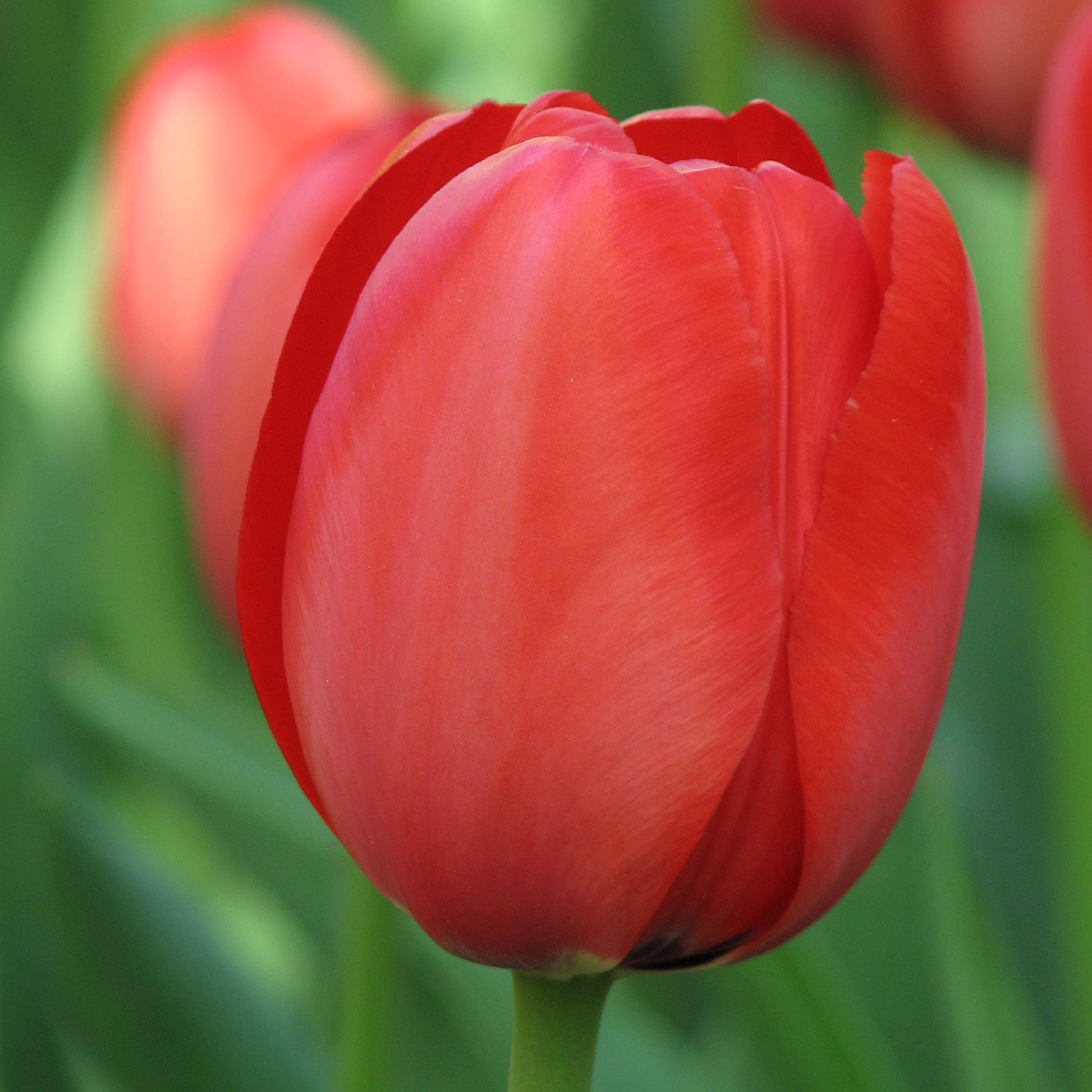 The classic Red Darwin Hybrid Tulip. Vibrant cherry petals open to reveal a black heart edged with yellow. Simply stunning when grown in clumps in well drained soil in full sun. Work just as well in containers & pots.