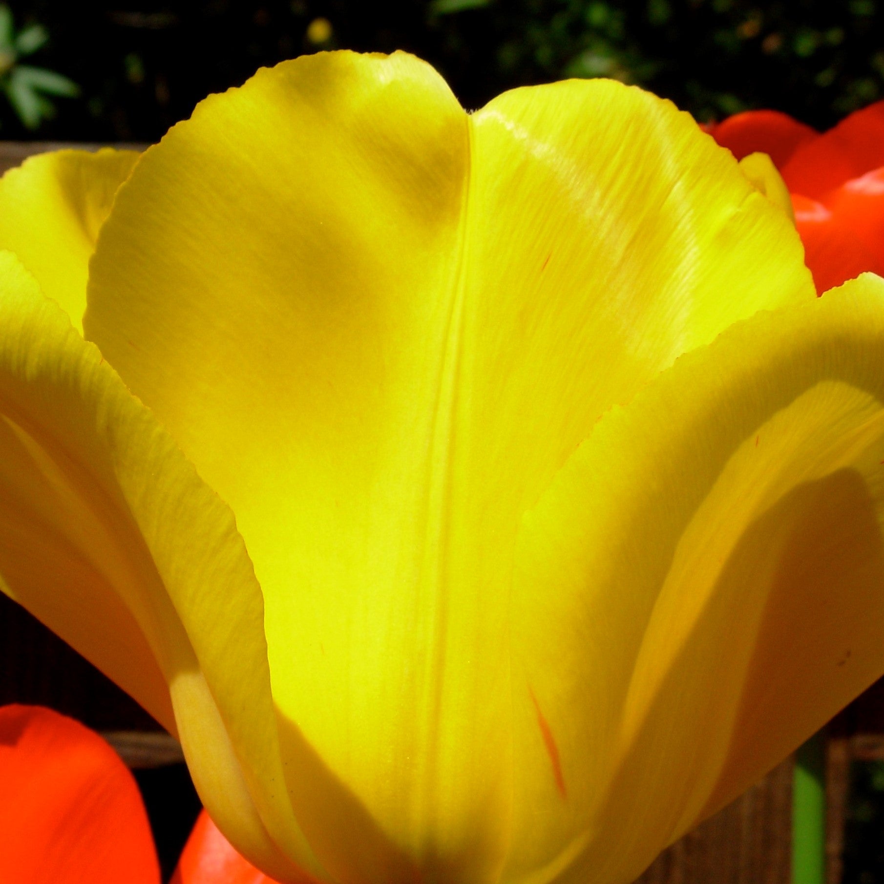 Tulip Golden Apeldoorn. Large flowers, strong stems, and clear bright yellow. Ideal for large scale plantings and creating masses of strong colour in well drained soil. Also work in containers.