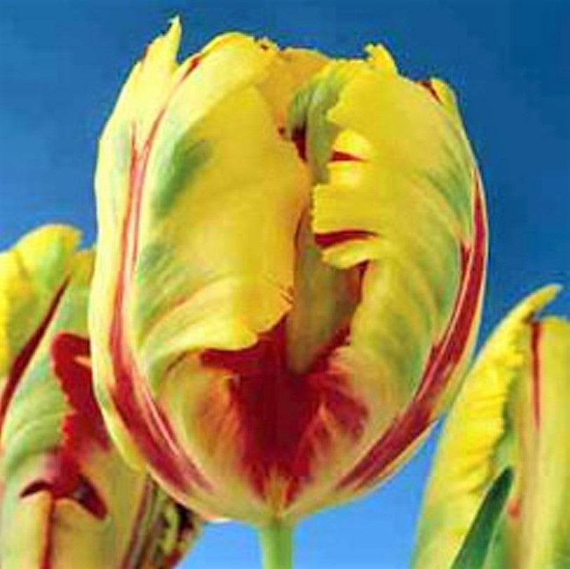 A lovely exotic parrot Tulip. Texas Flame will flower in the late Spring with their Bright Yellow Flowers with Bright Red flames. These will look stunning in any garden in borders, tubs or pots. These will also make delightful cut flowers.