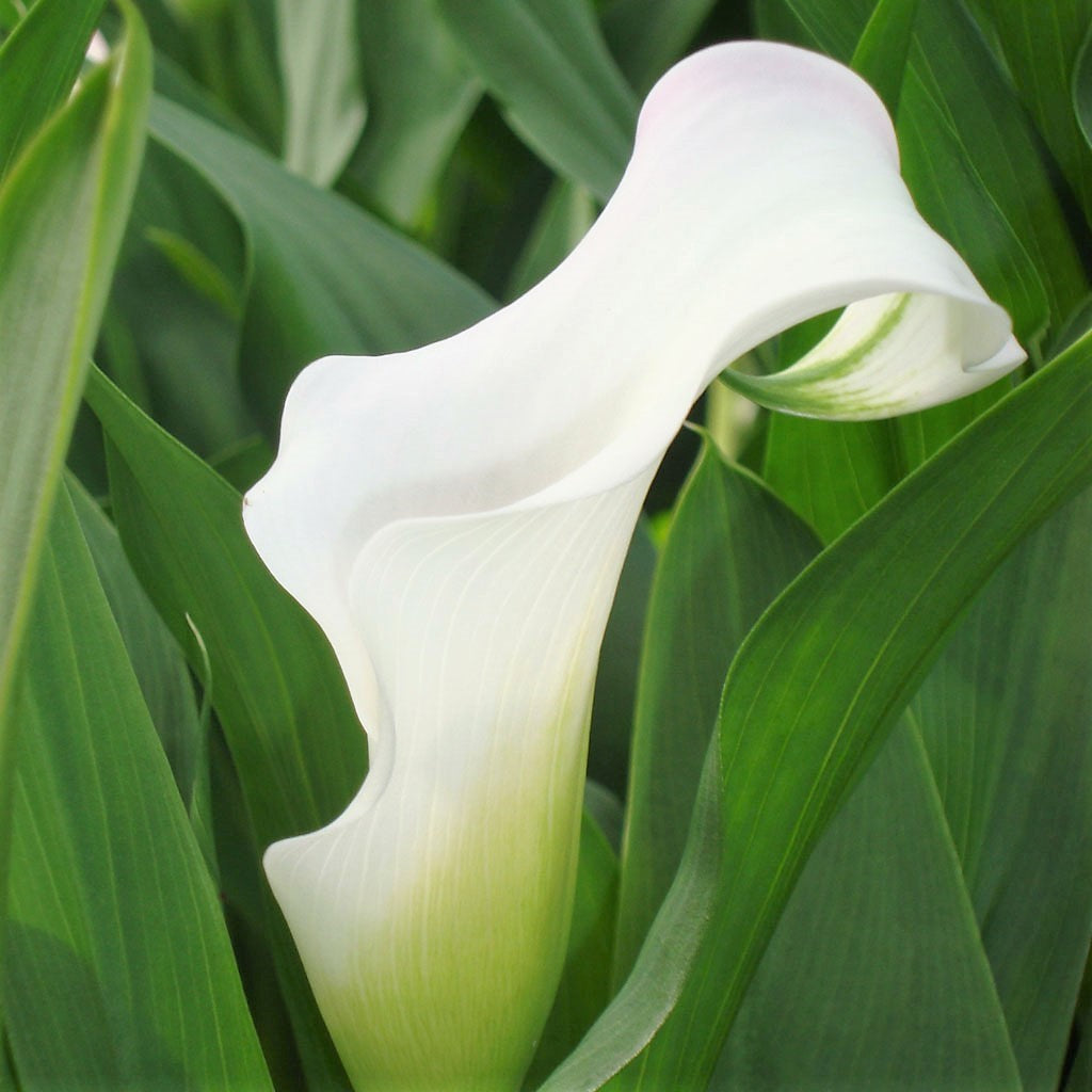 A world favourite, Calla Lily 'Crystal Blush' is absolutely irresistible with its abundant, pure white trumpet-shaped flowers (spathes), delicately blending to soft pink as they mature, atop elegant, mid-green, arrow-shaped leaves. Zantedeschia, known as the Calla lily are are a very popular addition to your summer garden. They will bear narrow, lance or funnel shaped flowers in the most fantastic array of colours. They are particularly effective when grown in groups within a border, or planted in pots and spread out on the patio.